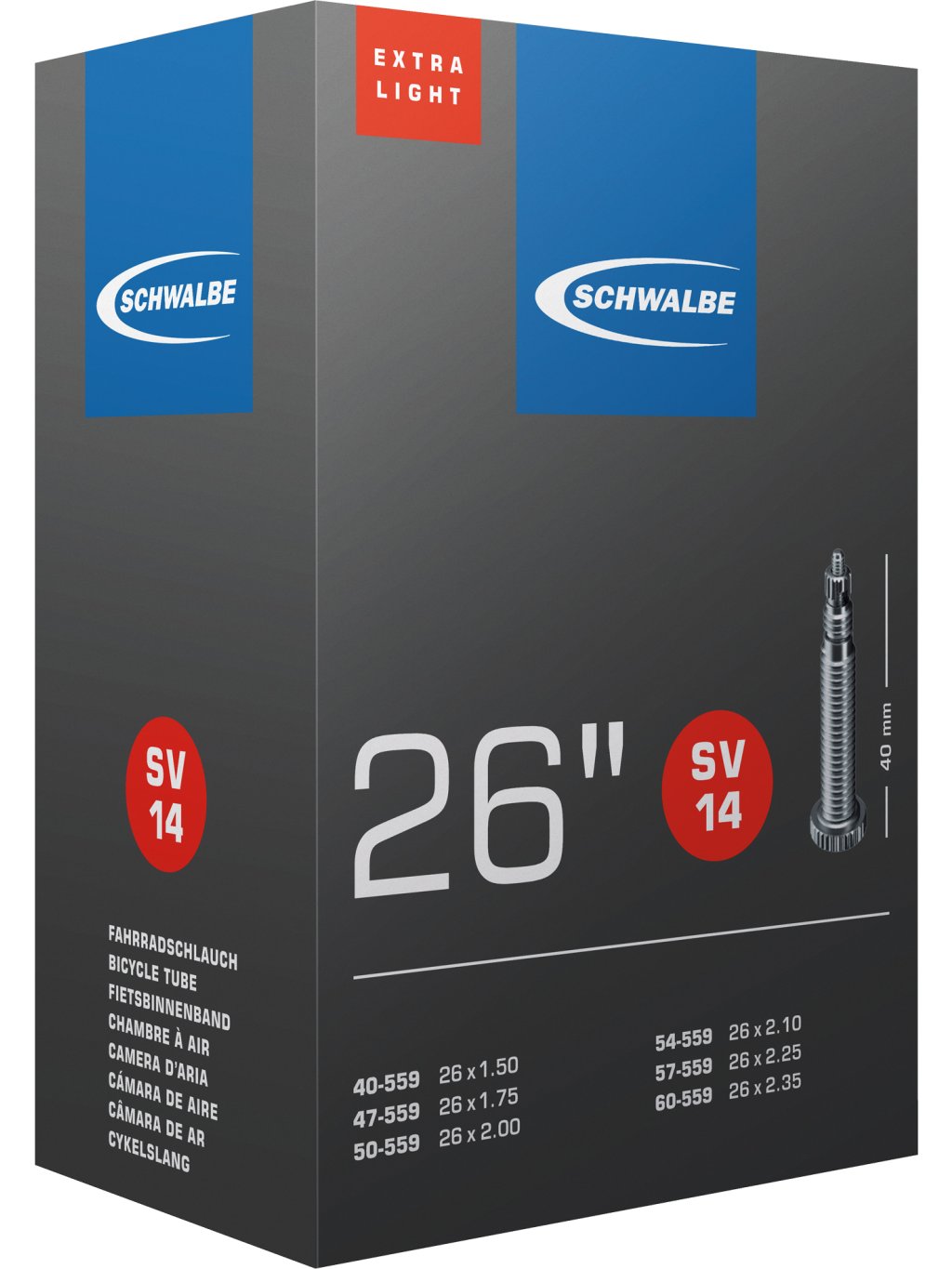 SCHWALBE duše 26", 40/60-559, SV 40 mm, EXTRALIGHT, BUTYL, 130 g