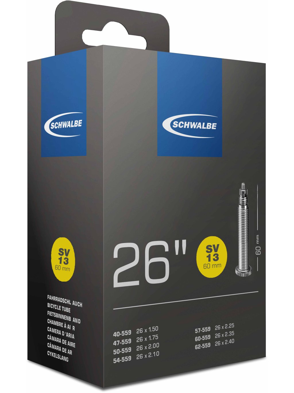 SCHWALBE duše 26", 40/62-559, SV 60 mm, STANDARD, BUTYL, 190 g