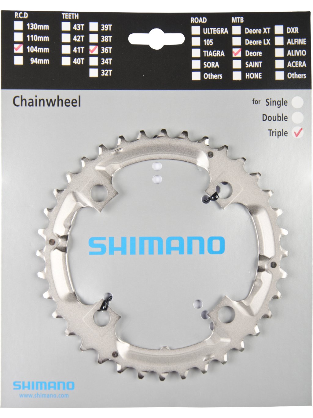 SHIMANO převodník DEORE FC-M532, 9 rychl, 104 mm, stříbrná, 36 z.